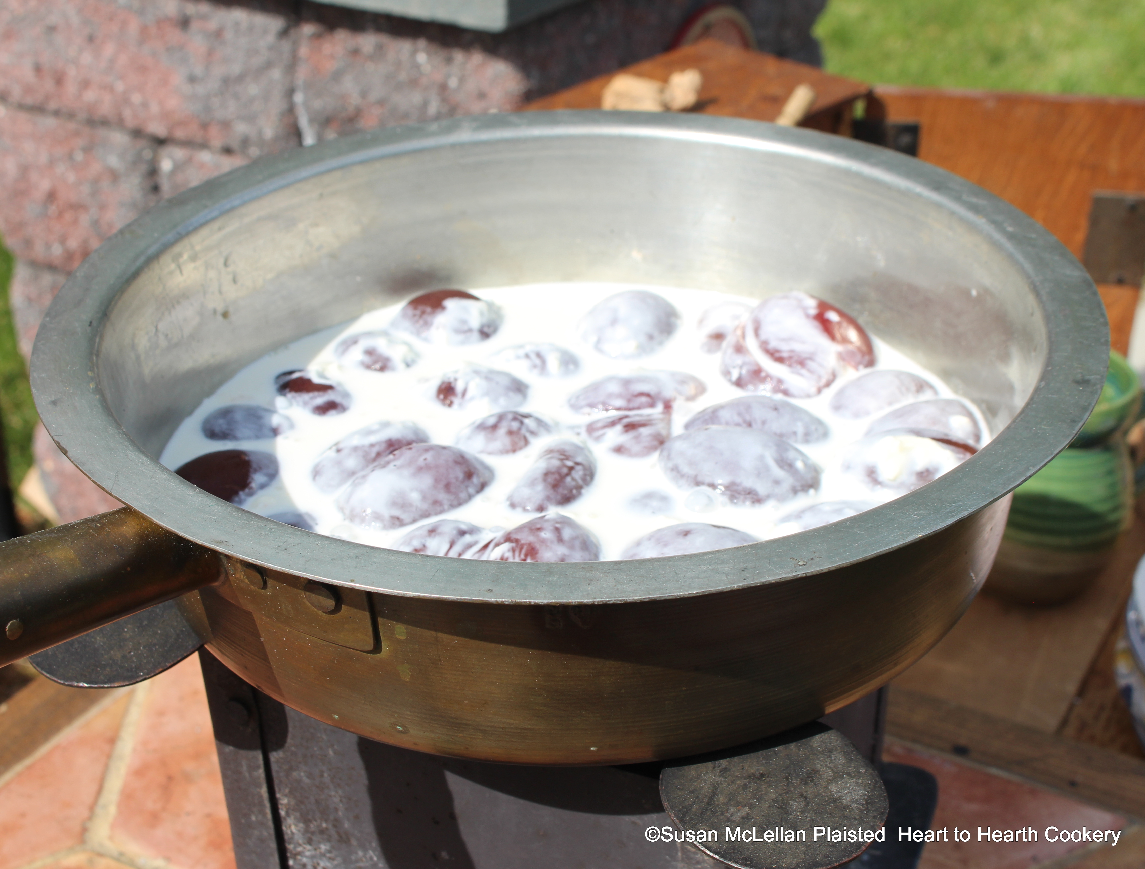 After a halfe a pinte of creame has been put into the skillet with the slit plums for the receipt (recipe) Plum Tarts-My Lady Sheldons Receipt, let it boyle till the plums are all broke; and it be prety thike stiring it all the while.