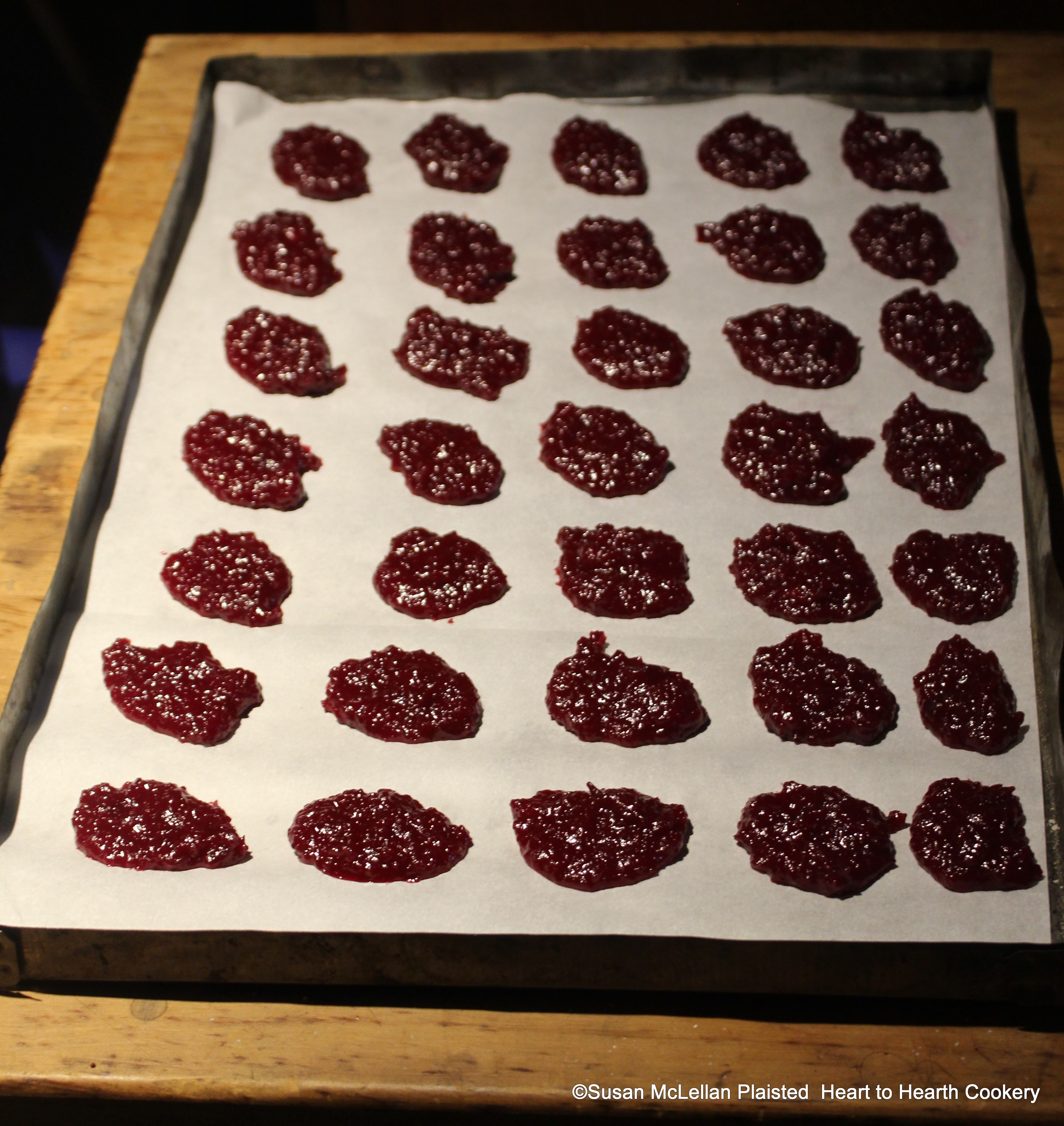 After the mixture of mashed beets, sugar, butter of the Yolks of hard Eggs, flour, cinnamon, orange flower water and lemon juice have been reduced to a paste for the receipt (recipe) To make Crimson Biscuit of Red Beet-Roots, make them into Cakes. The cakes are on a tin baking sheet lined with paper ready to dry in an Oven.