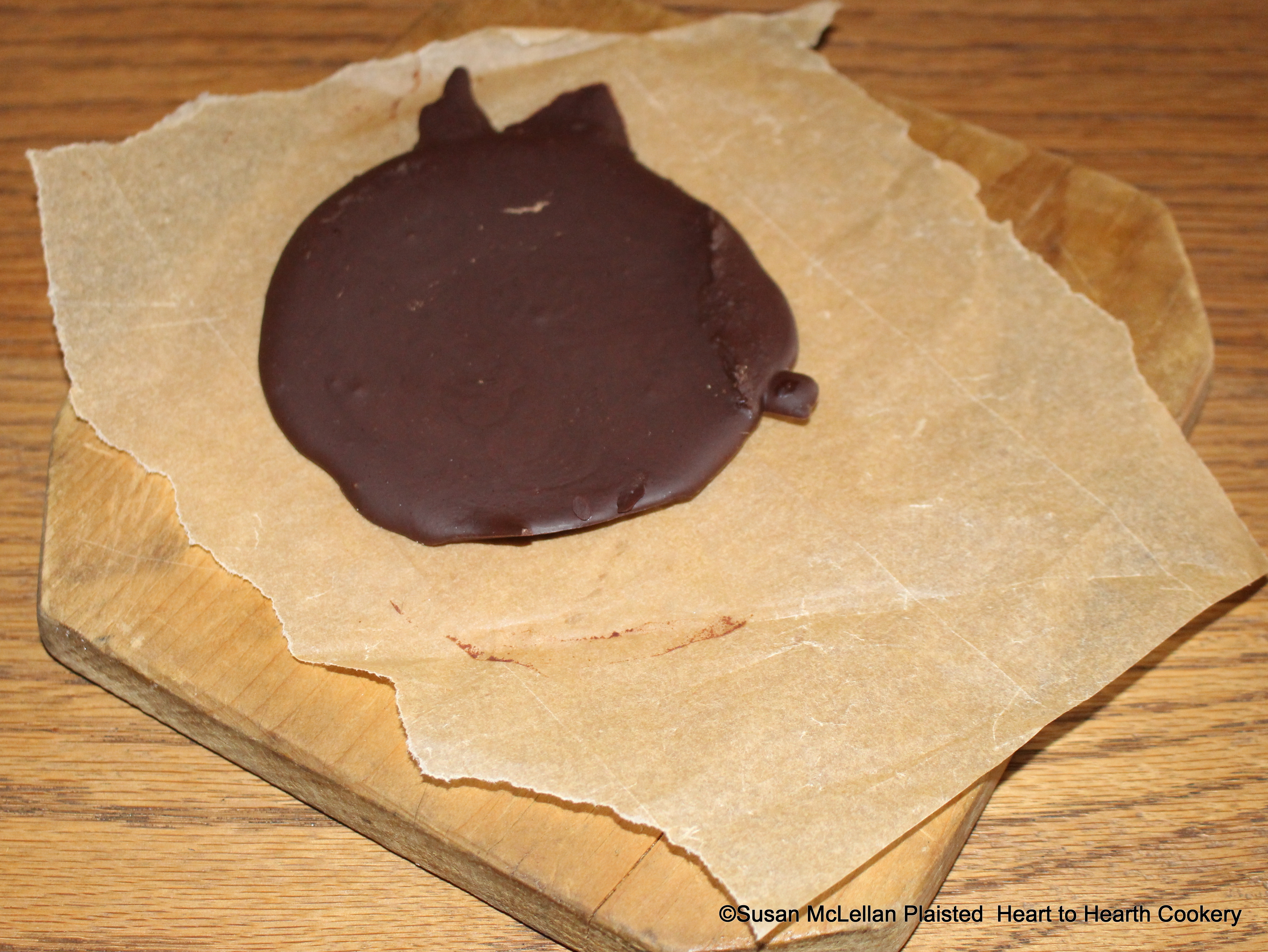 After the chocolate liquor has been removed from the heated metate, it solidifies into a chocolate cake. This chocolate cake with others was used to make the receipt (recipe) To make Chocolate with Water.