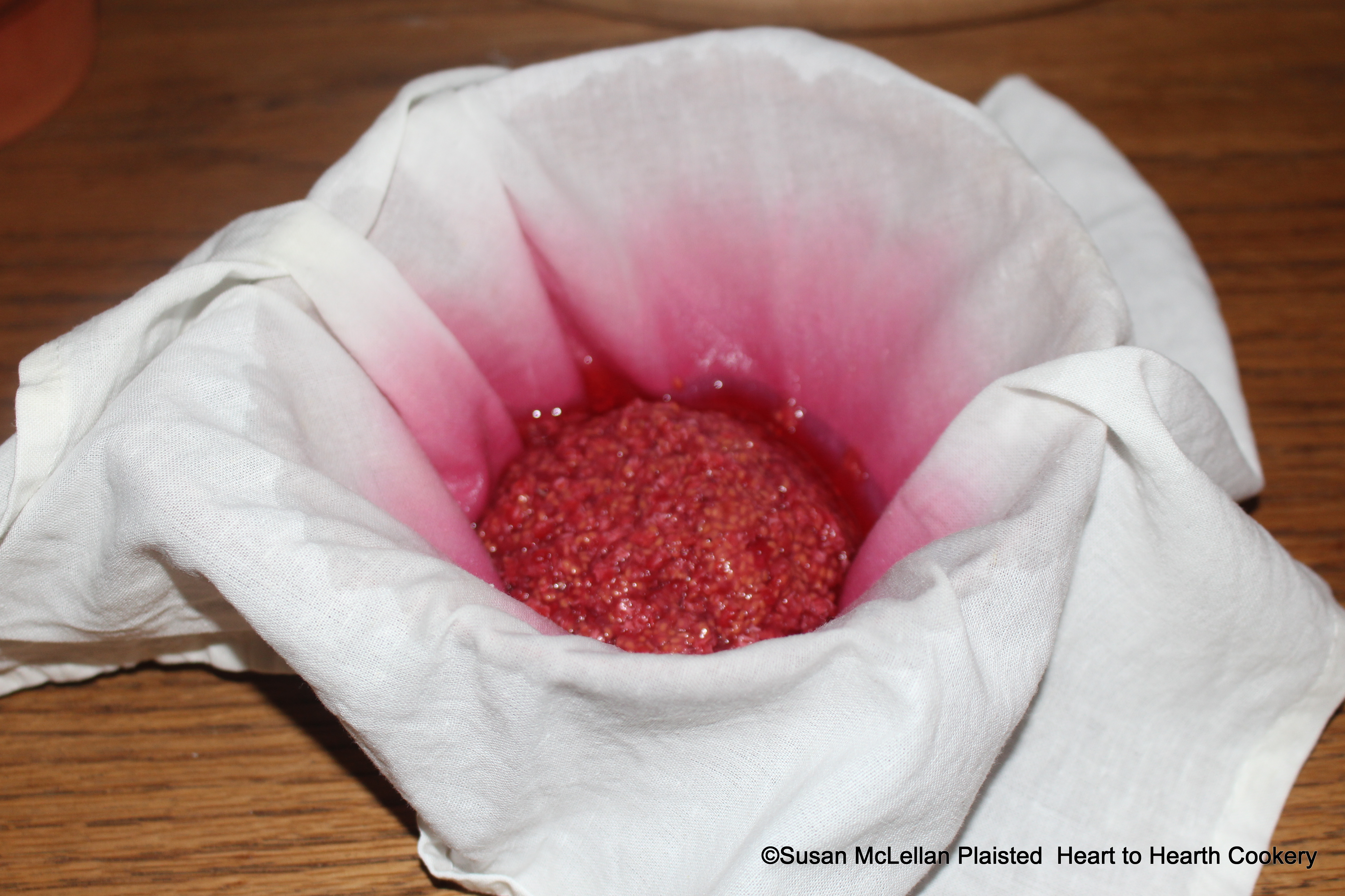 After washing the picked raspberries for the receipt (recipe) To make Rasberry Water, the raspberries were easy to bruise inside a linen cloth.