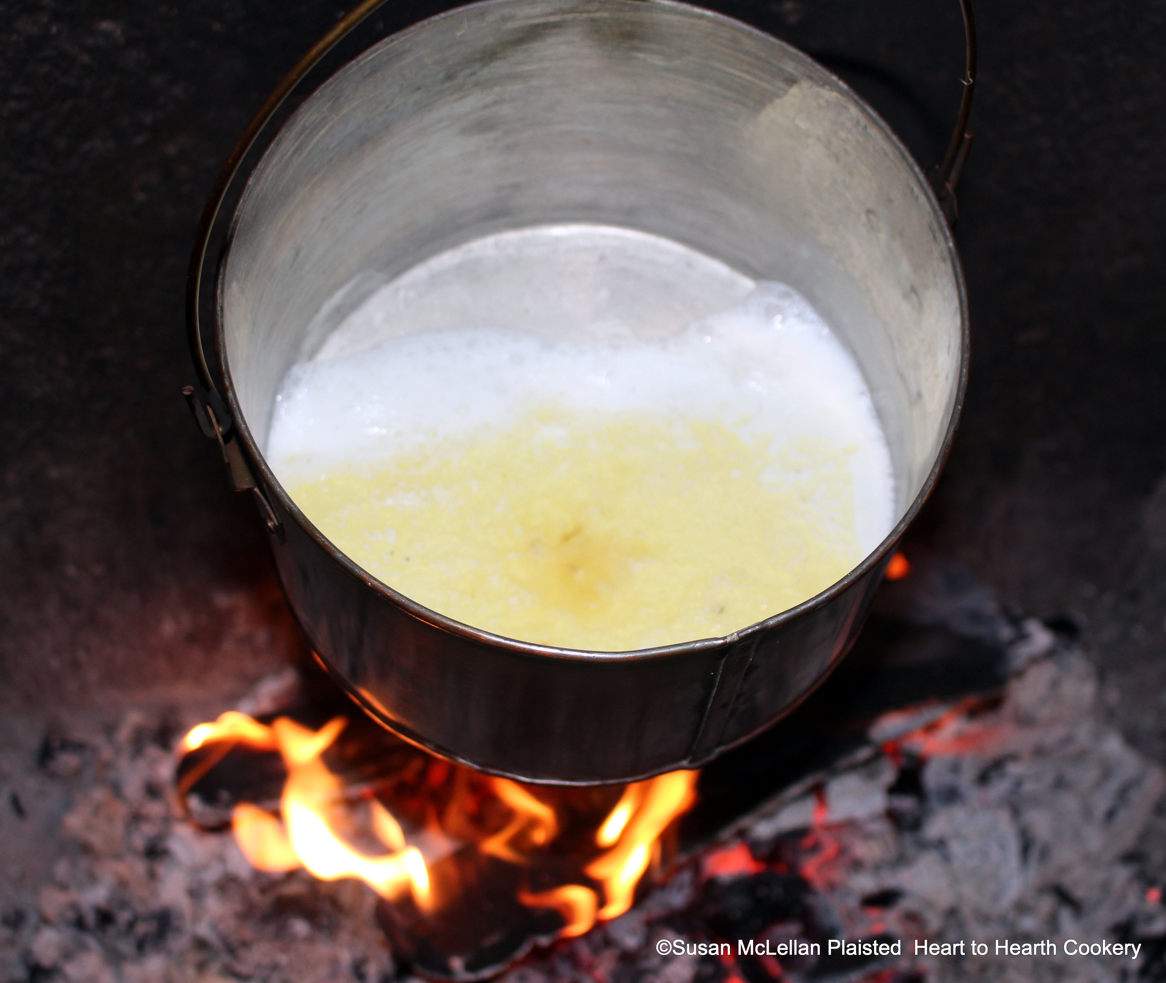 After the diced pumpkin has been boiled in water to a marmalade for the receipt (recipe) Pompkin Soop, then boil a Pint of Milk with a Bit of Butter.