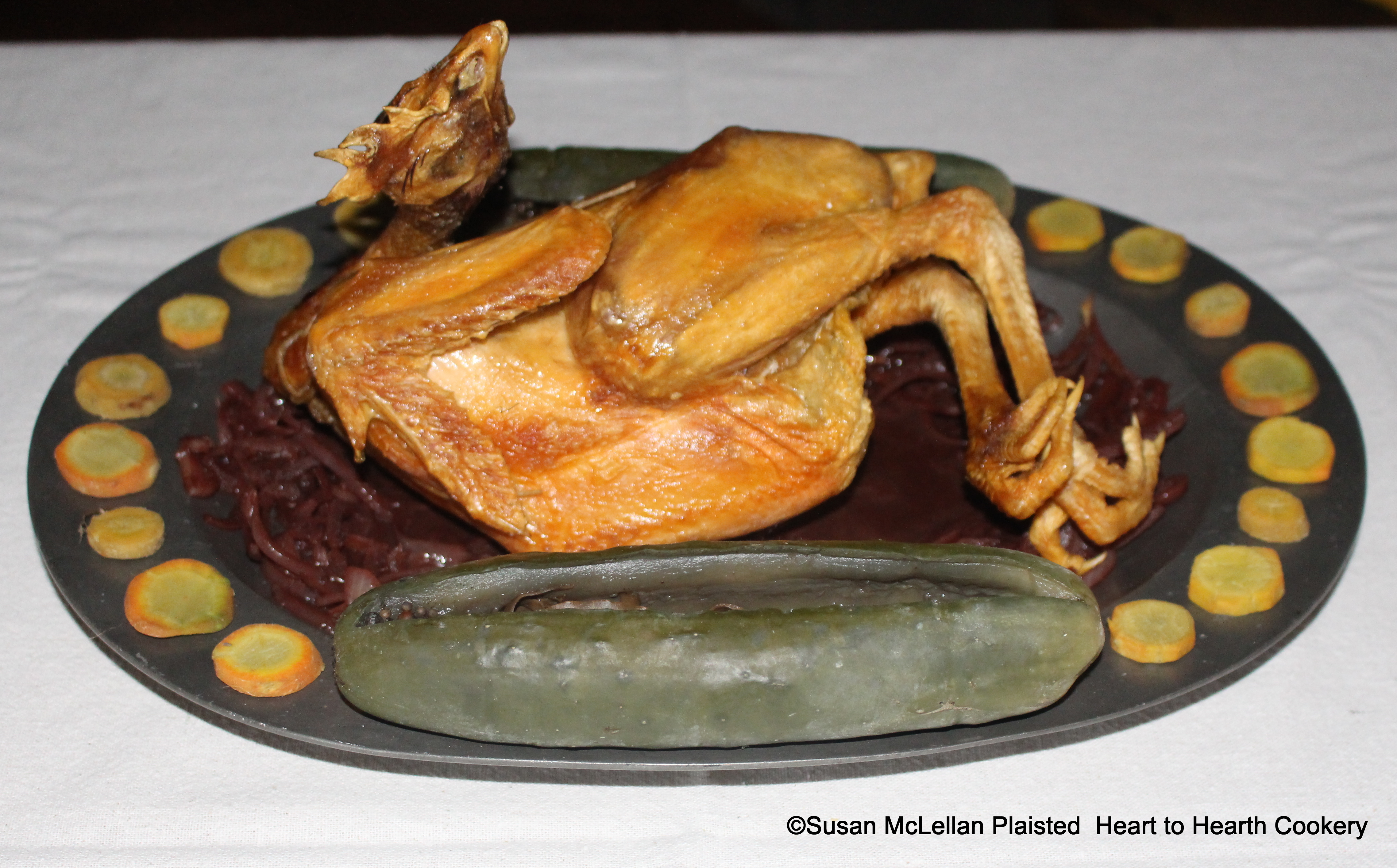 The carotts pickled using the receipt (recipe) To pickle anythinge greene: my second Cousen Clerke was presented to table as a garnish for this roasted fowl.