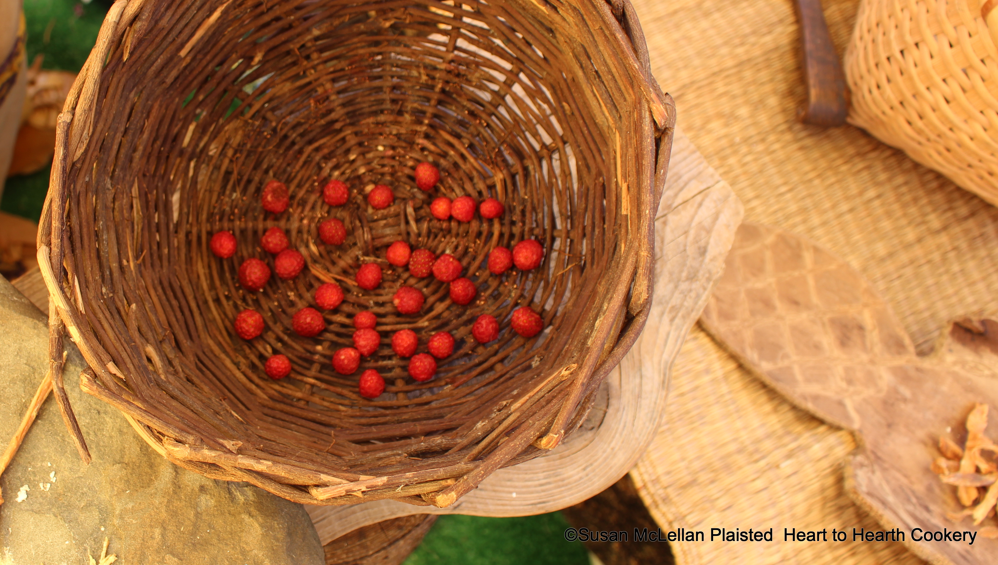 After the native strawberries have been hulled, the berries were placed in a grapevine basket ready to be dried (preserved) by the sun.