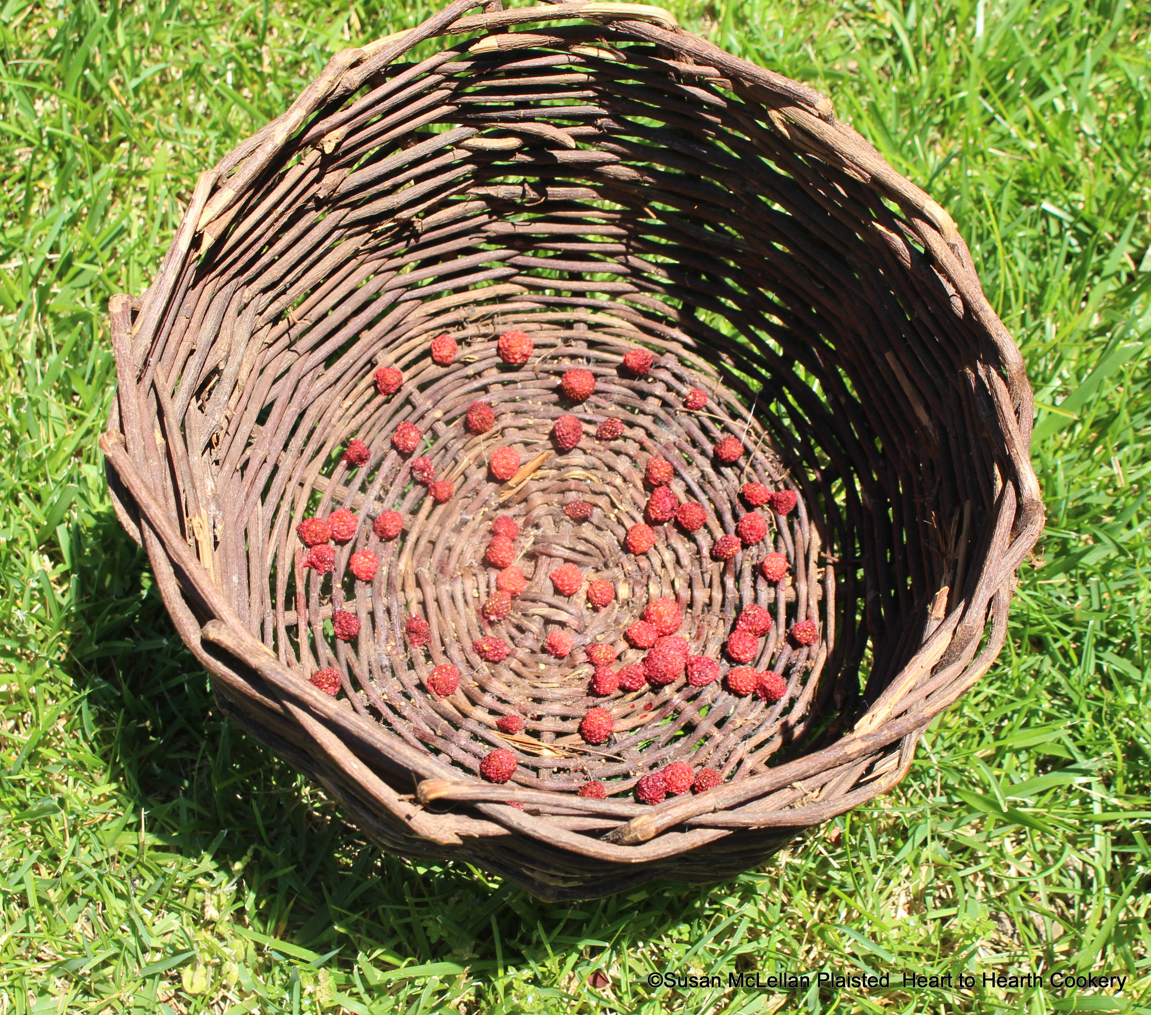 After the grapevine basket of native strawberries were placed where the full rays of the sun could dry and preserve them, the effects of the sun were seen.