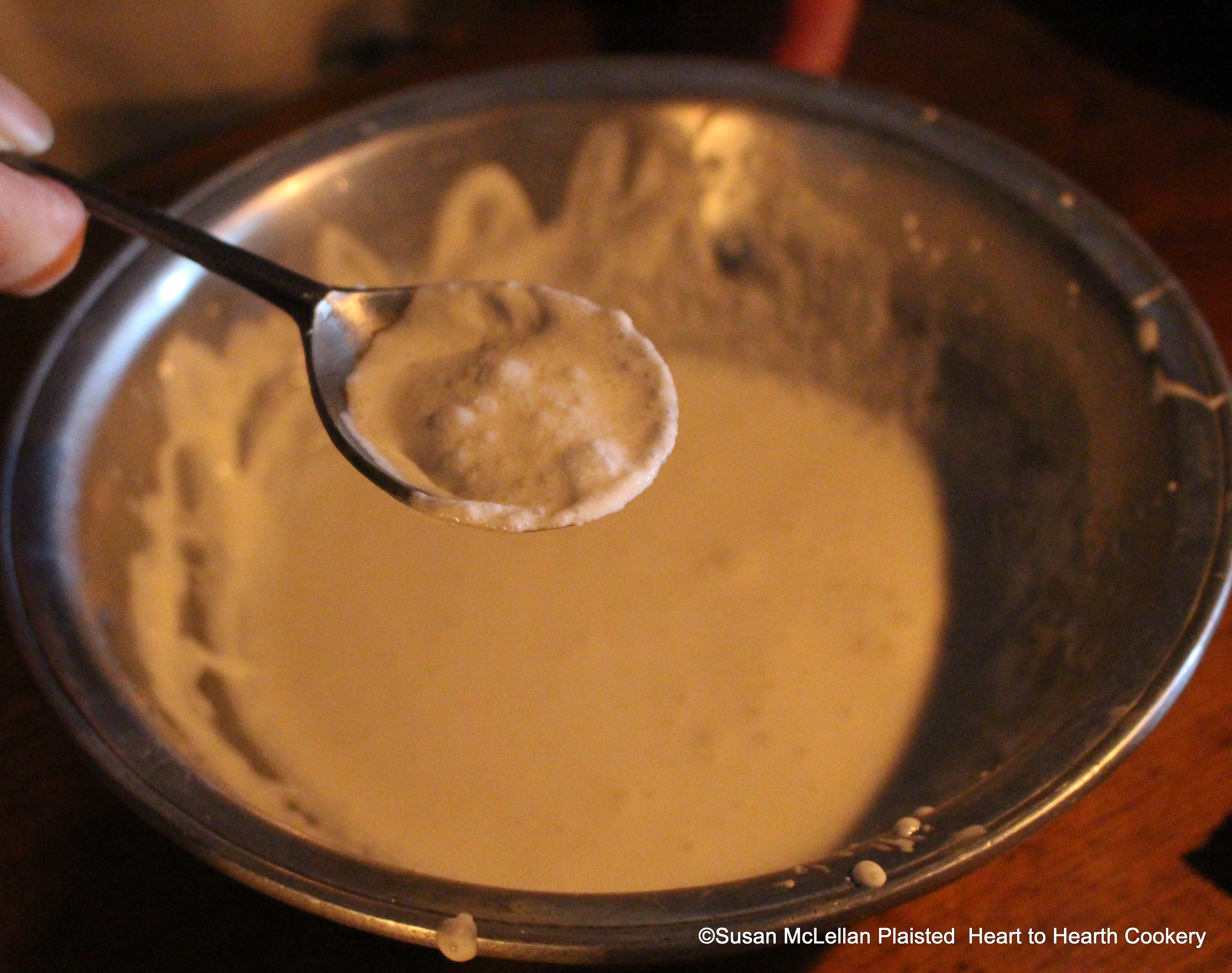 Just the froth is the goal of whisking the mixture of a small amount of cream with a small amount of sweetened sack (dry sherry), flavored with a branch of rosemary and lemon juice, for the 1674 receipt (recipe) To make a very fine Sillabub. I always think of Ivan Day (a food historian from England) as he used the term “silly bubbles” when teaching about these early sillabubs. It is a learned technique to whisk fast and with a light hand to just obtain bubbles and not a whipped cream consistency. When the amount of the mixture gets to the whipped cream stage it is time to start anew with a little of the Liquor and a little of the Cream.