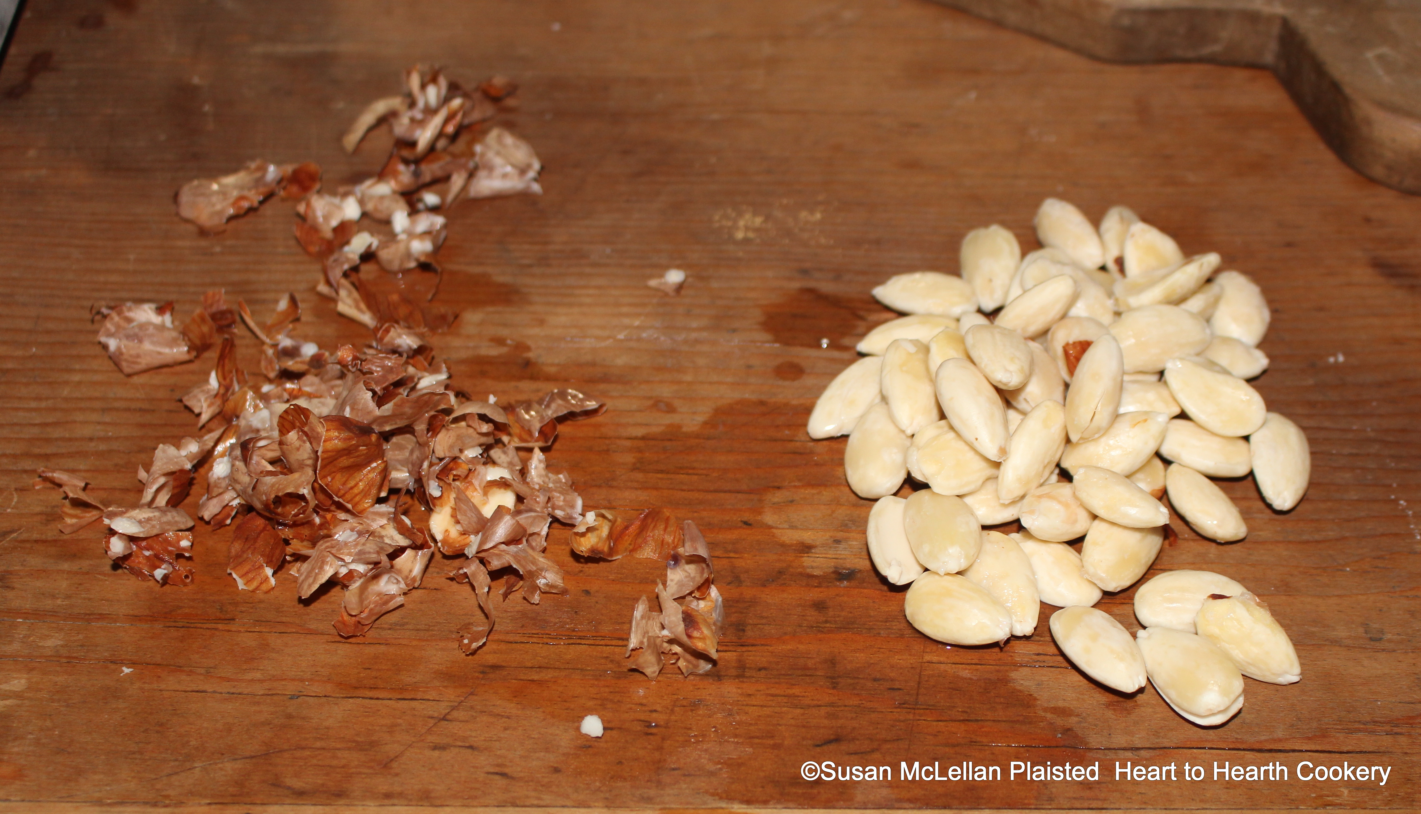 After the sugar and gum tragacanth mixture has been rolled into cakes for the receipt (recipe) To make White Gingerbread then take a fewe Jordain almonds and blaunch them in colde water. This is the first receipt that has almonds blanched in cold water rather than hot and I found it a more difficult method.