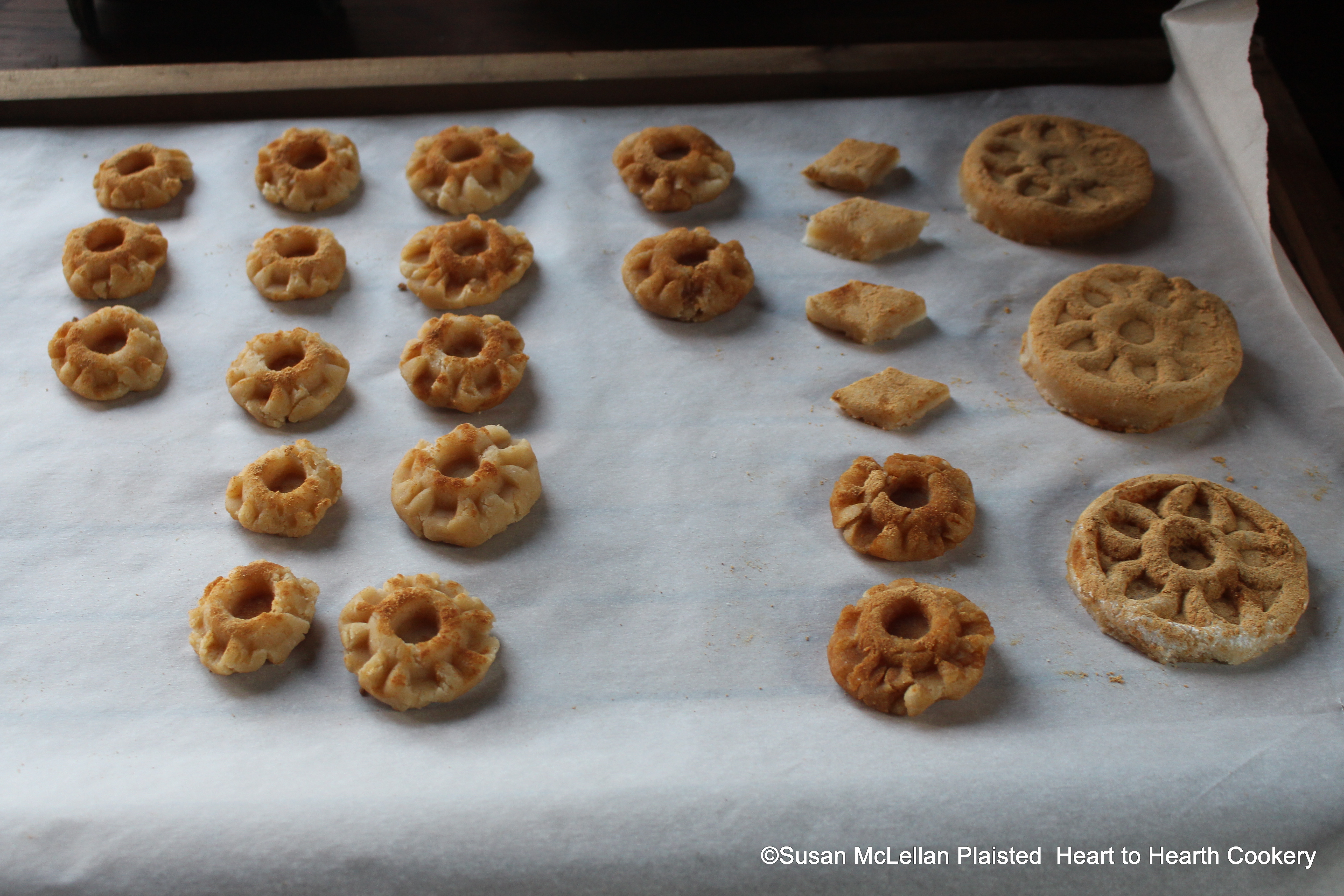 After the layers of sugar plate and almond paste have been strewn with ginger above and beneath and molded for the receipt (recipe) To make White Gingerbread the cakes were laid on white paper on a drying rack to dry.