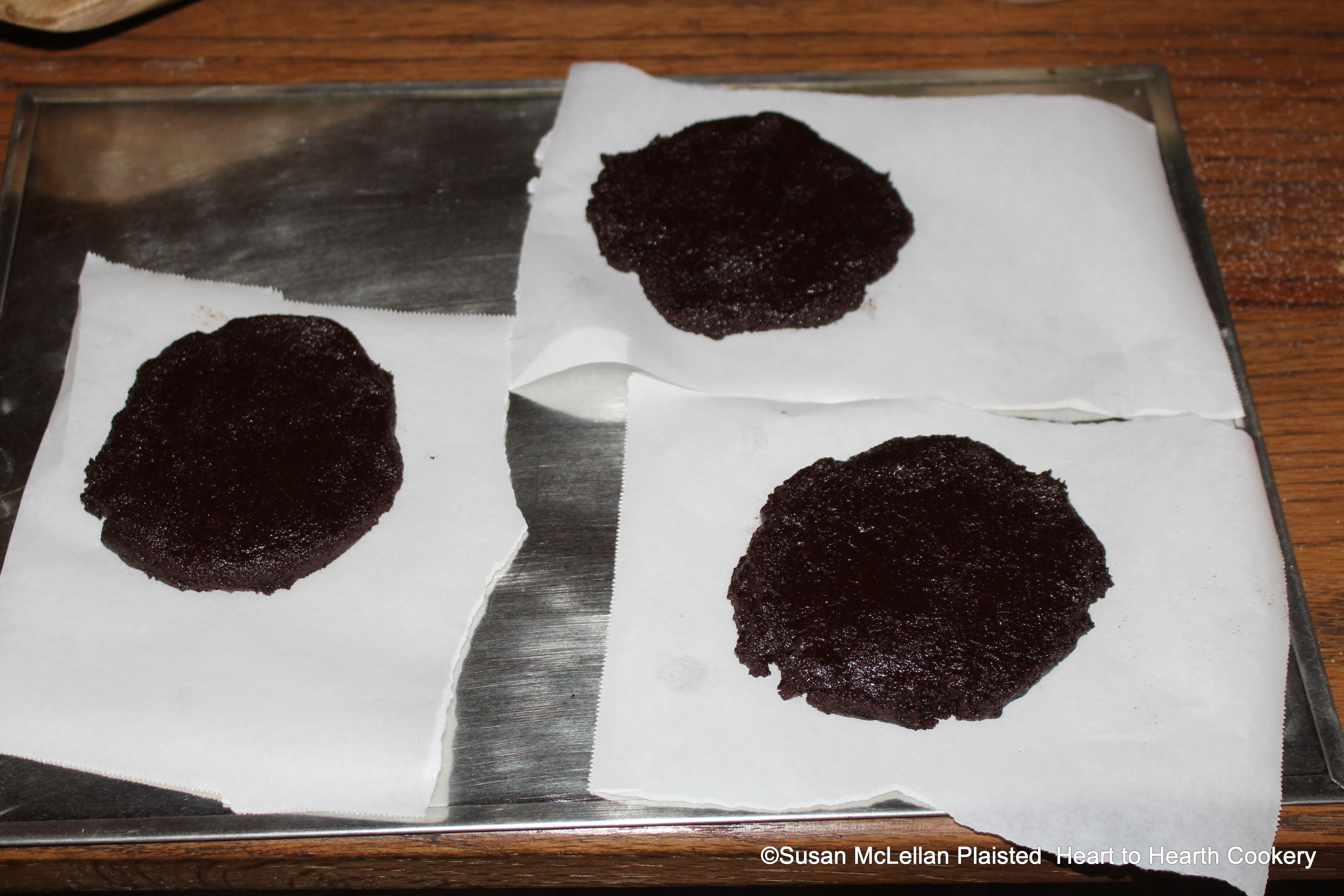 After the heated mixture of finely ground cacao nuts, sugar, cinnamon, nutmeg, aniseed, long pepper and Jamaican pepper have been beaten fast in a mortar and pestle till it works like paste for the receipt (recipe) To make Chocolate the paste is made into cakes that are allowed to harden.