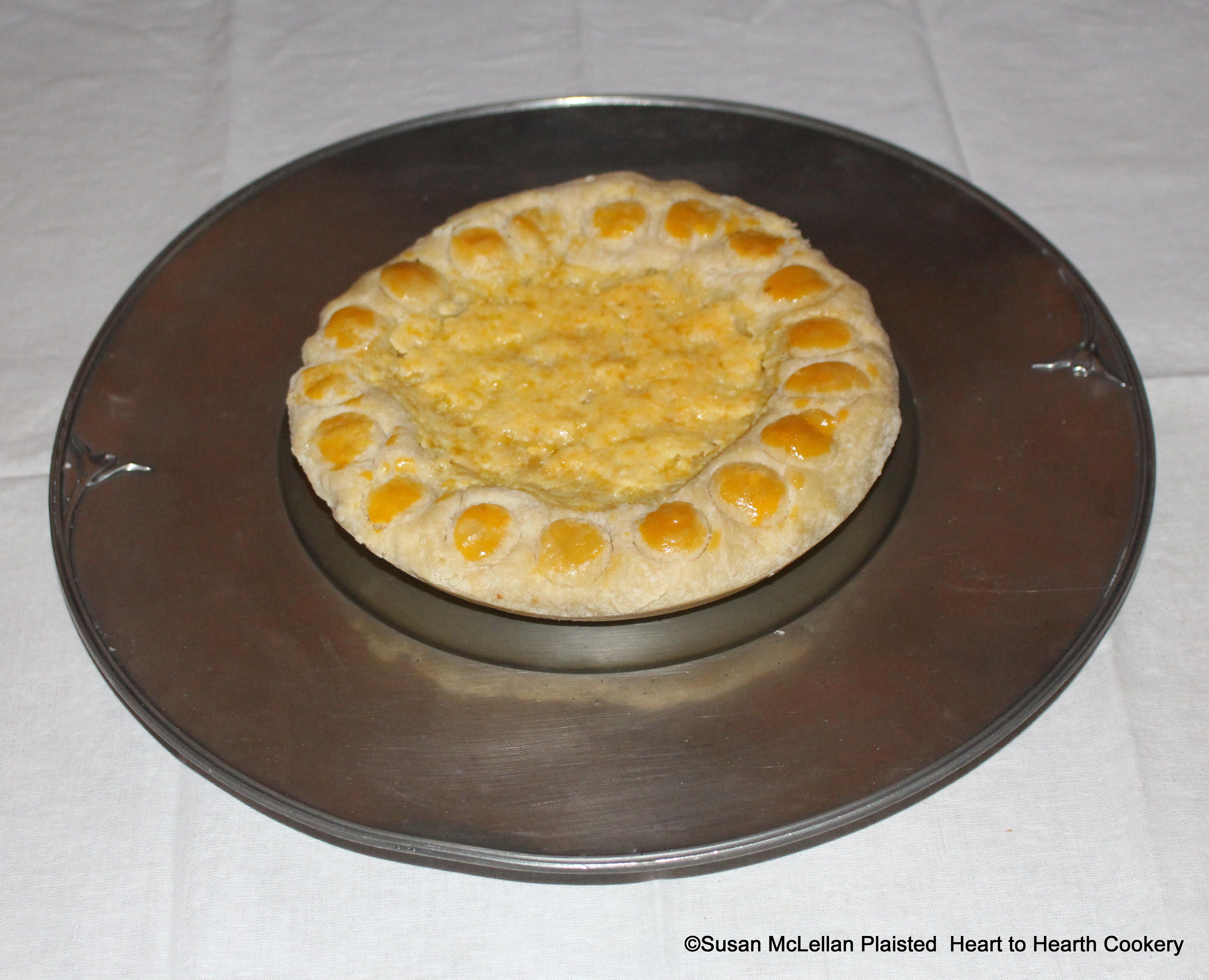 The receipt (recipe) To make the Orange pudding presented to table: Take the rind of a small Orange, paired very thin, and boiled in several waters till it be very tender, then beat it very fine in a morter, then put to it four ounces of fine sugar, four ounces of fresh butter, the yolks of six eggs and a spoonful or two of cream, with a very little salt, beat all these together in a morter, while the oven heats then bake it in puff-paste. Hannah Wolley, 1654.