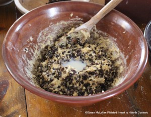 After the Spice (nutmeg and ginger) and Fruit (currants and raisins) were added for the receipt (recipe) A Boiled Plumb-Pudding add as much Milk as will mix it well together and very thick.