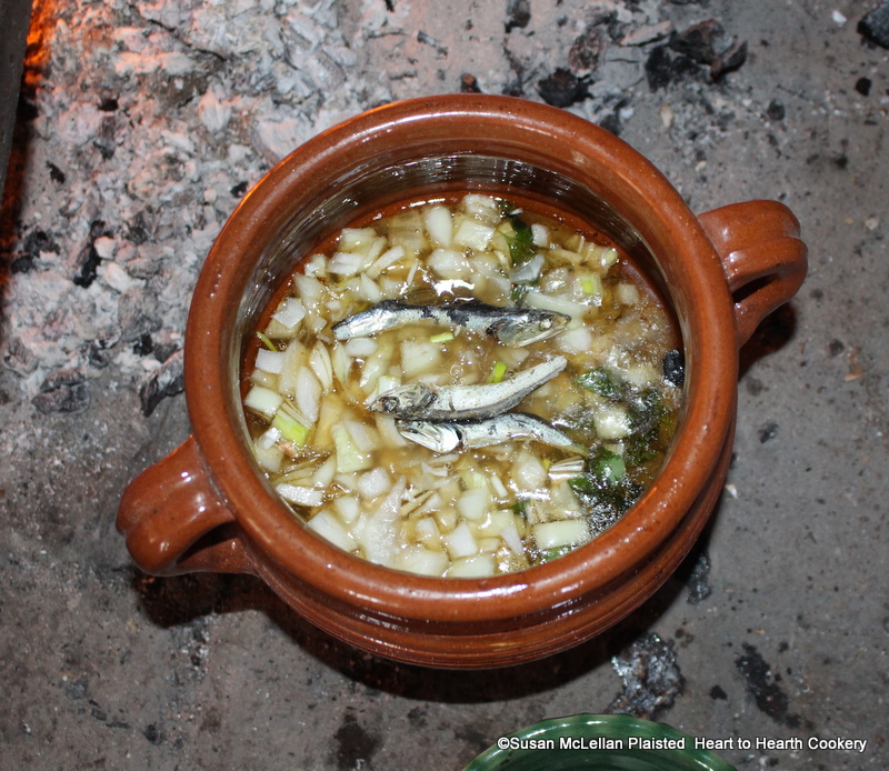 After the onions have been added to the redware stewpot for the receipt (recipe) To harsh a Roast of Mutton add three Anchovies. Anchovies are members of the Engravlidae family, which includes many different species of small fish that are foraged by sea birds, marine mammals and larger fish. When added to a receipt they do not impart a fish flavor but enhance the flavor of the dish.