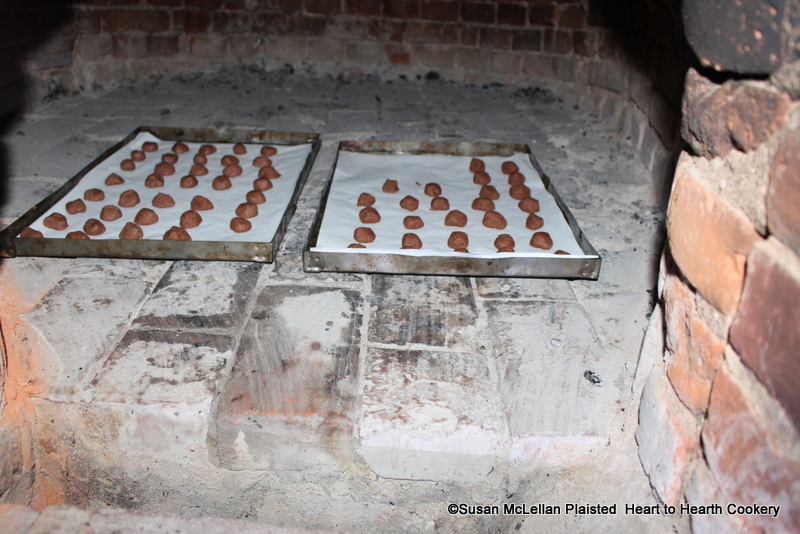 After the batter has been dropped the size of a sixpence on baking sheets lined with paper and strewn with sugar for the receipt (recipe) Chocolate Puffs bake them in a slow oven. A slow or slack bake oven occurs at the end of a baking day after bread and other items have been baked at higher heat.