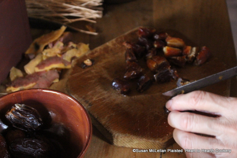 After the stoned Raisins of the Sun have been added to the coffin for the receipt (recipe) To make a Potato Pye add some quartered Dates.