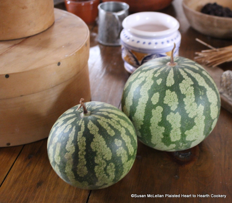 The American citron melon is very hard fleshed and bland and many consider it inedible. At the least, it is not palatable but its story in this country is wonderful. The candied rind of this melon was substituted in receipts (recipes) brought to this country by European colonists that called for candied citron (a citrus fruit). The next receipt is The American Citron from Amelia Simmons’ American Cookery.