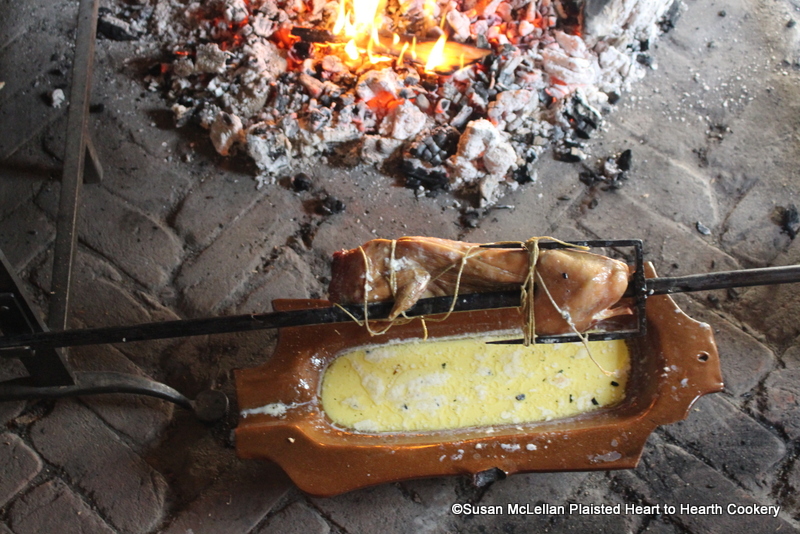After the belly of the rabbit filled with whisked egg mixed with parsley is sewn closed with linen twine for the receipt (recipe) To Roast a Rabbit spit the rabbit. The rabbit is so small that twine was used to hold the rabbit in place on the spit.