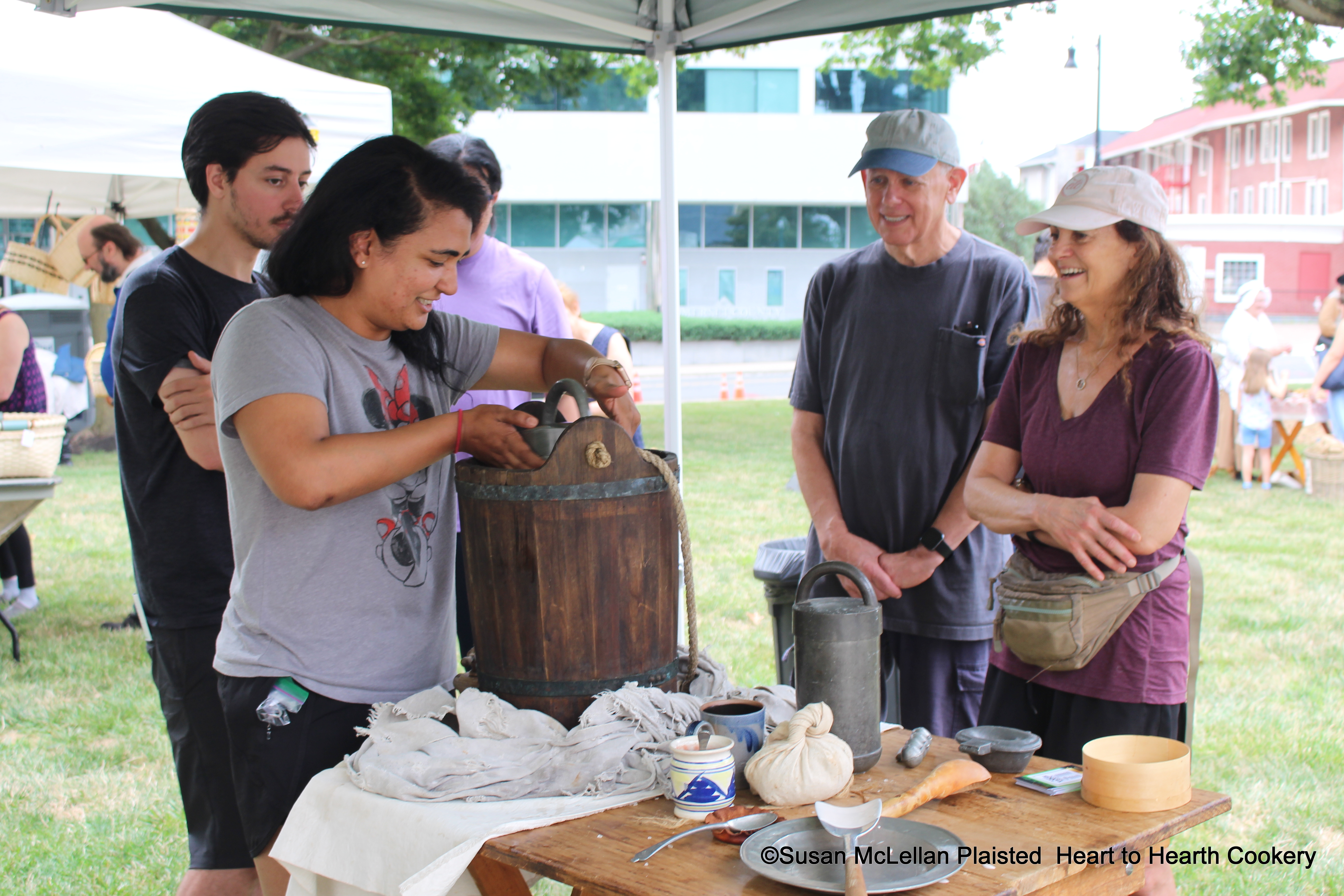 The cheesemaking process is demonstrated with rennet and raw milk and shows the preparation of both soft and hard cheeses. Actual demonstration is available only during the months that milk was available in the 18th century. Presentations, showing all aspects of the cheesemaking process are available year round. Very popular!